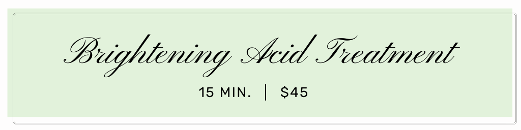 Treatment Includes: cleanse, acid treatment, moisturizer, and SPF. Great pick me up, once-a-week treatment.